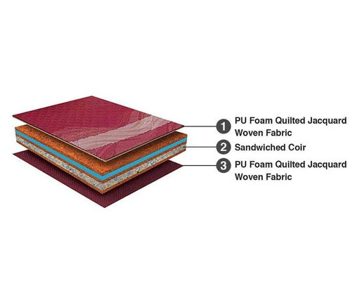 With a core of High-Density Bonded foam sandwiched between layers of Rubberized Coir and furnished with PU Foam quilting for great sleep for years.